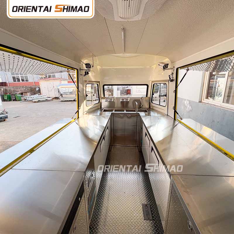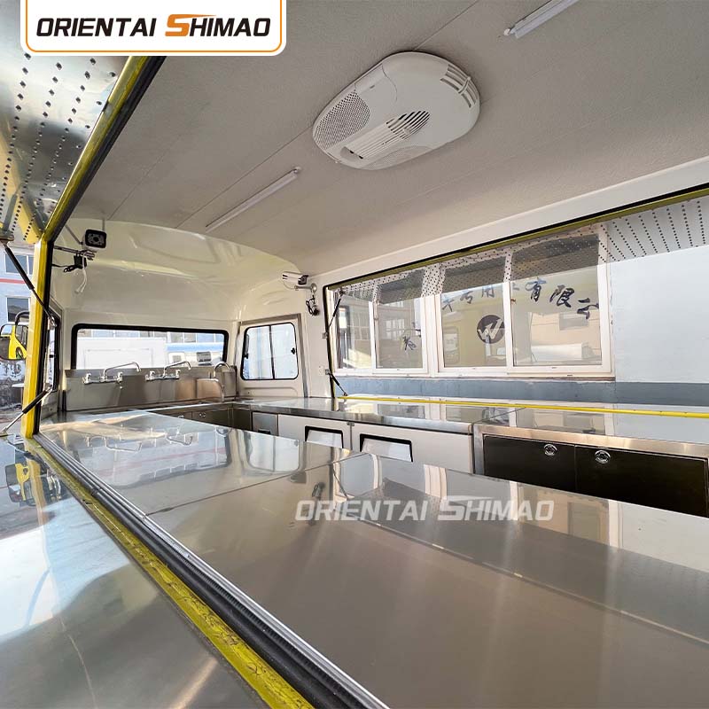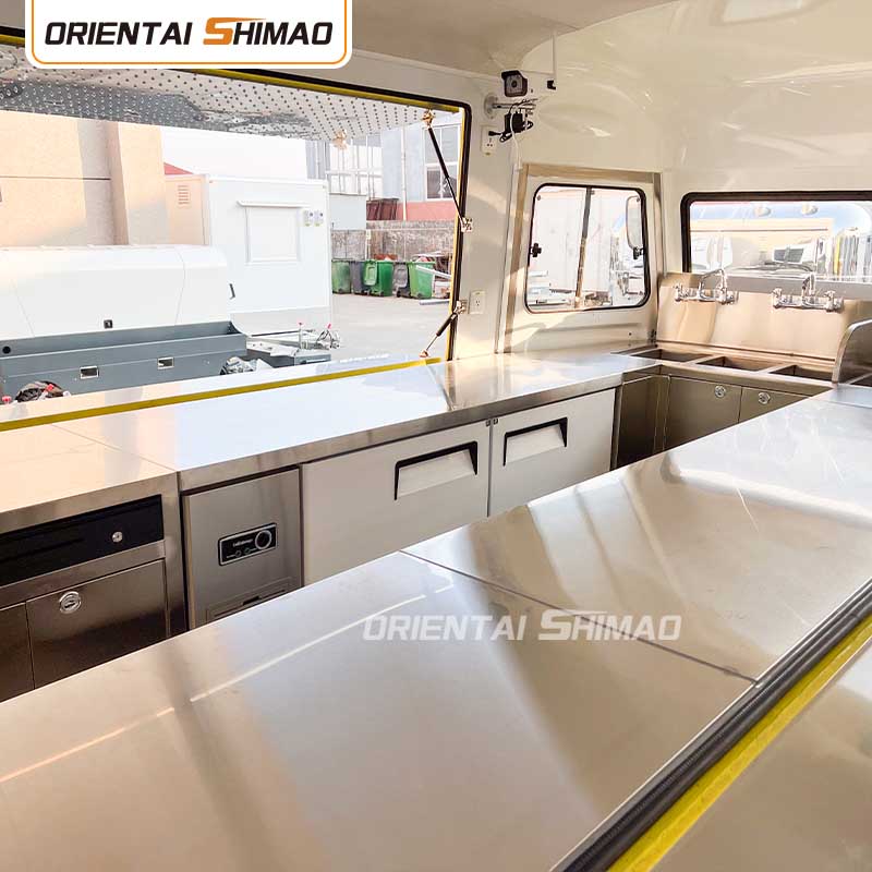 Wszechstronność: aby sprostać potrzebom różnych scenariuszy cateringowych, w pojeździe wbudowano różnorodne profesjonalne urządzenia do gotowania i przechowywania, od przyborów kuchennych po miejsca do przechowywania składników, które mogą zaspokoić potrzeby zróżnicowanych i wysoce wydajnych operacji cateringowych oraz znacznie zwiększyć wydajność operacyjną, niezależnie od tego, czy chodzi o gotowanie na miejscu, czy szybką dostawę żywności.
