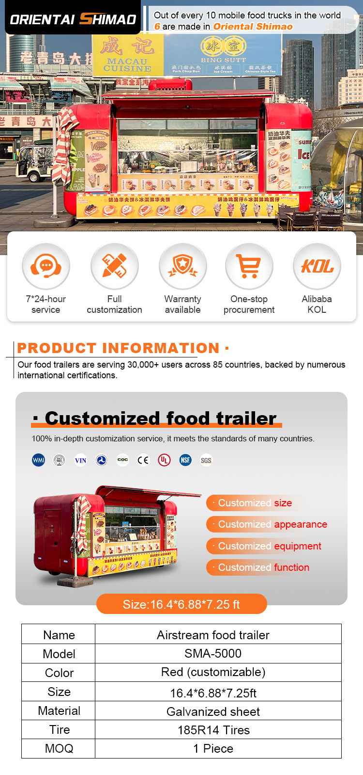 Możemy zaoferować przyczepy gastronomiczne Certyfikaty: DOT, CE, SGS, SCI, ISO, COC,