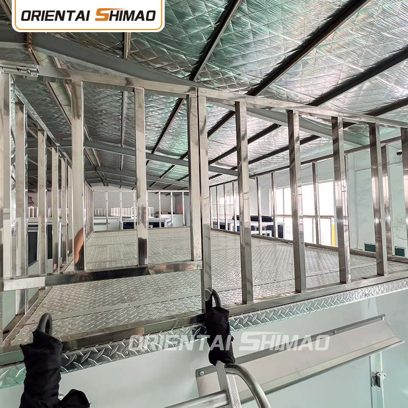 Jeśli chodzi o konstrukcję podłogi, jest ona jeszcze bardziej pomysłowa, wykorzystując trójwarstwową strukturę, aby uzyskać wiele efektów ochronnych. Dolna warstwa wykonana jest z tworzywa sztucznego wzmocnionego włóknem szklanym (FRP), które ma doskonałe właściwości wodoodporne i odporne na wilgoć, skutecznie blokując przedostawanie się wilgoci z gruntu do wnętrza food trucka; warstwa środkowa wykonana jest z desek drewnianych importowanych z Australii, odpornych na owady, które zostały specjalnie zabezpieczone naturalną funkcją przeciw owadom, tworząc solidną linię obrony bezpieczeństwa żywności; a górna warstwa jest wyłożona trwałymi płytami aluminiowymi, które są nie tylko antypoślizgowe i odporne na zużycie, ale także poprawiają ogólną estetykę i trwałość, zapewniając, że goście mogą cieszyć się jedzeniem w najlepszy możliwy sposób. Wierzchnia warstwa pokryta jest mocną i trwałą płytą aluminiową, która jest nie tylko antypoślizgowa i odporna na zużycie, ale także poprawia ogólną estetykę i trwałość, zapewniając bezpieczeństwo i komfort gości podczas delektowania się jedzeniem.