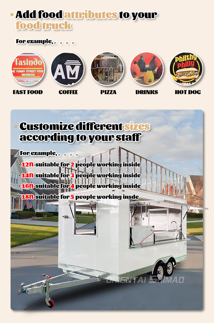 Niektórych przyciąga unikalny design Przyczepy z jedzeniem gotowym do franczyzy i z ciekawością pytają o rodzaje żywności dostępne w Przyczepie z jedzeniem gotowym do franczyzy, inni przychodzą tu tylko po to, by skosztować niezapomnianych lokalnych smaków, o których opowiadała nam legenda. Przed przyczepą Oriental Shimao Franchise-Ready Food Trailer ludzie nie tylko cieszą się najwyższą satysfakcją kubków smakowych, ale także doświadczają niespotykanej dotąd towarzyskiej zabawy w miłej i miłej atmosferze. Niezależnie od tego, czy jest to małe spotkanie przyjaciół, czy rodzinny wypad, jest to idealne miejsce na dzielenie się jedzeniem i emocjami.