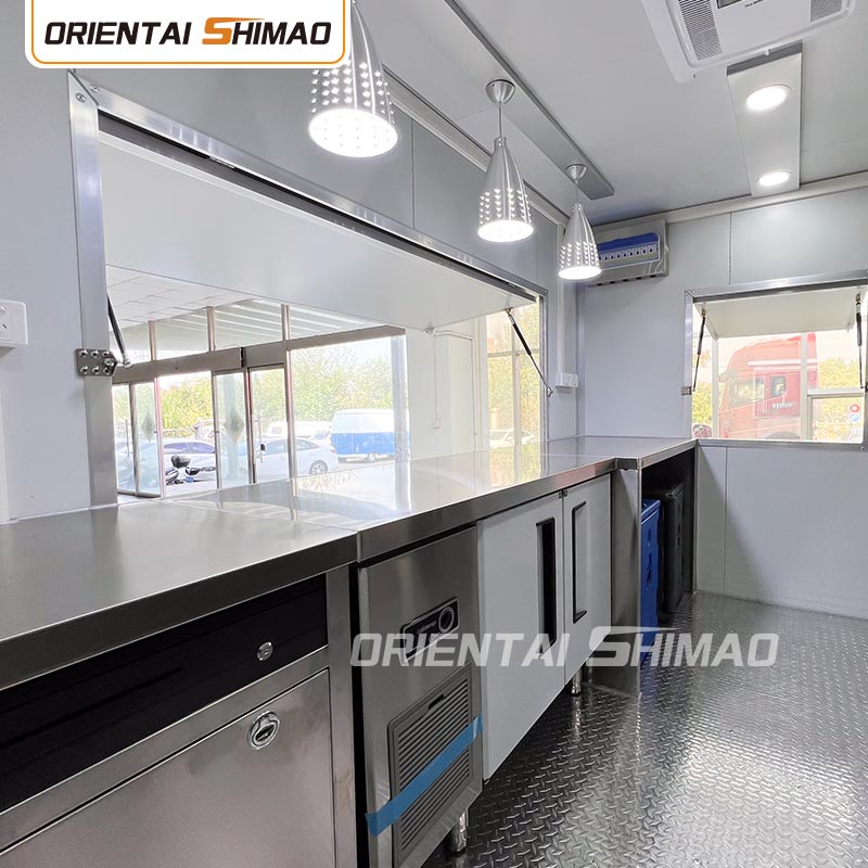 Funkcje dodatkowe: dodaj inne dodatkowe funkcje zgodnie z potrzebami klienta, takie jak chłodzenie i zachowanie świeżości, ogrzewanie i ochrona przed ciepłem, wodoodporność i odporność na elektryczność itp., aby zwiększyć praktyczność i bezpieczeństwo food trucka.