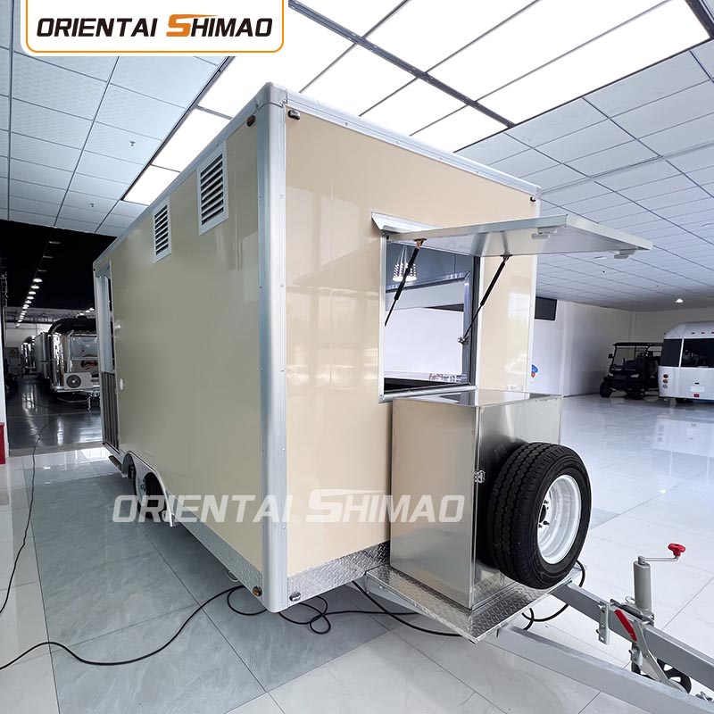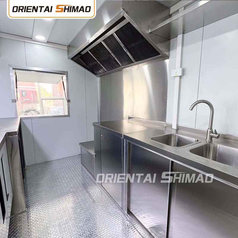 Złota stal nierdzewna: zewnętrzna część food trucka wykonana jest z wysokiej jakości złotej stali nierdzewnej. Materiał ten ma nie tylko doskonałą odporność na korozję i ścieranie, ale także złoty wygląd zwiększa piękno wizualne i wysoką jakość, dzięki czemu food truck może wyróżniać się w różnych środowiskach.