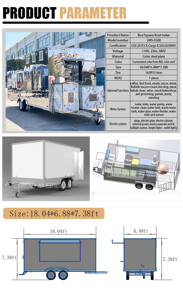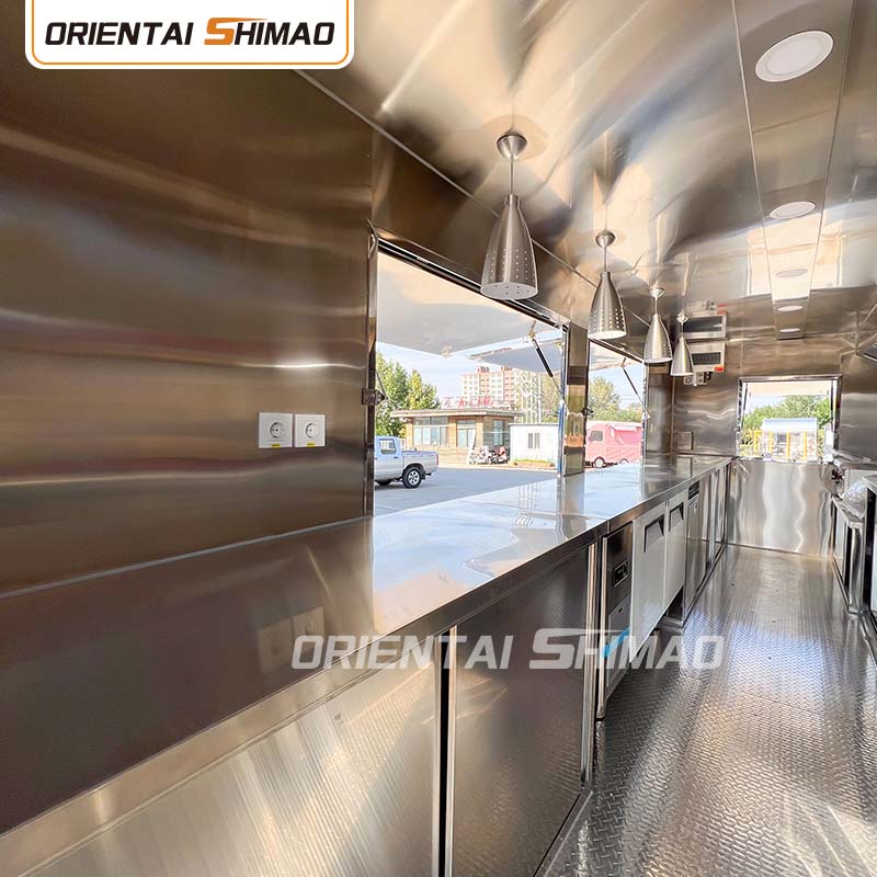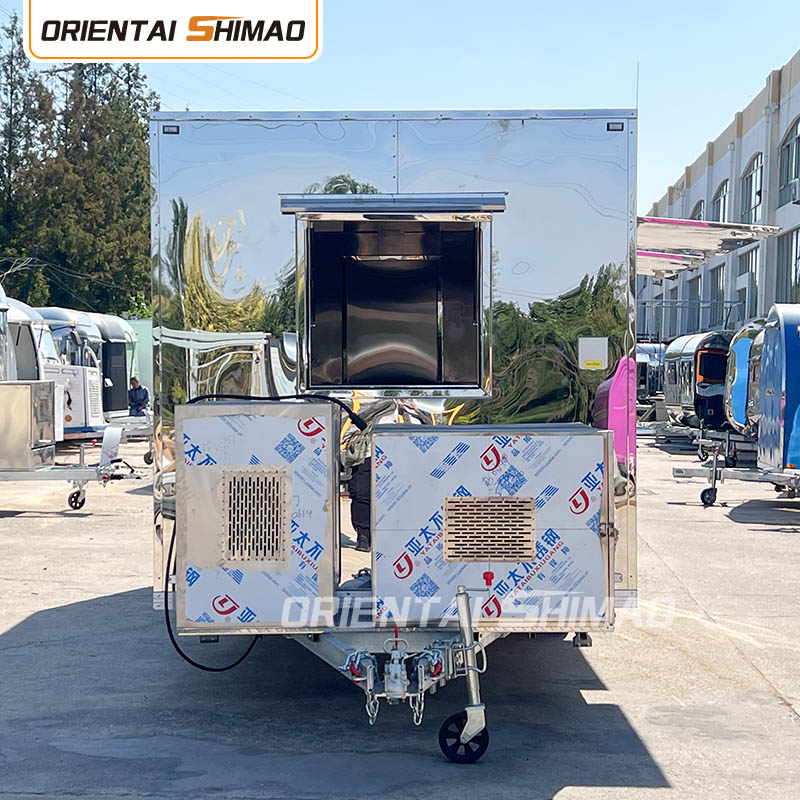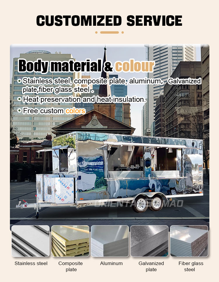 Jako główny materiał wybraliśmy wysokiej jakości stal nierdzewną 304, która jest znana z doskonałej odporności na korozję i doskonałej trwałości, a także może utrzymać stabilną wydajność w różnych warunkach środowiskowych, zapewniając, że nasze produkty Food Caravans mogą zachować doskonałą jakość i funkcjonalność nawet w dłuższej perspektywie i stawić czoła różnorodnym wyzwaniom. Doskonała odporność stali nierdzewnej 304 na korozję, dzięki czemu na ciężarówkę nie jest łatwo podatne utlenianie lub rdza, co znacznie wydłuża jej żywotność. Doskonała odporność na korozję stali nierdzewnej 304 sprawia, że ciężarówki są mniej podatne na utlenianie i rdzę, co znacznie wydłuża ich żywotność.