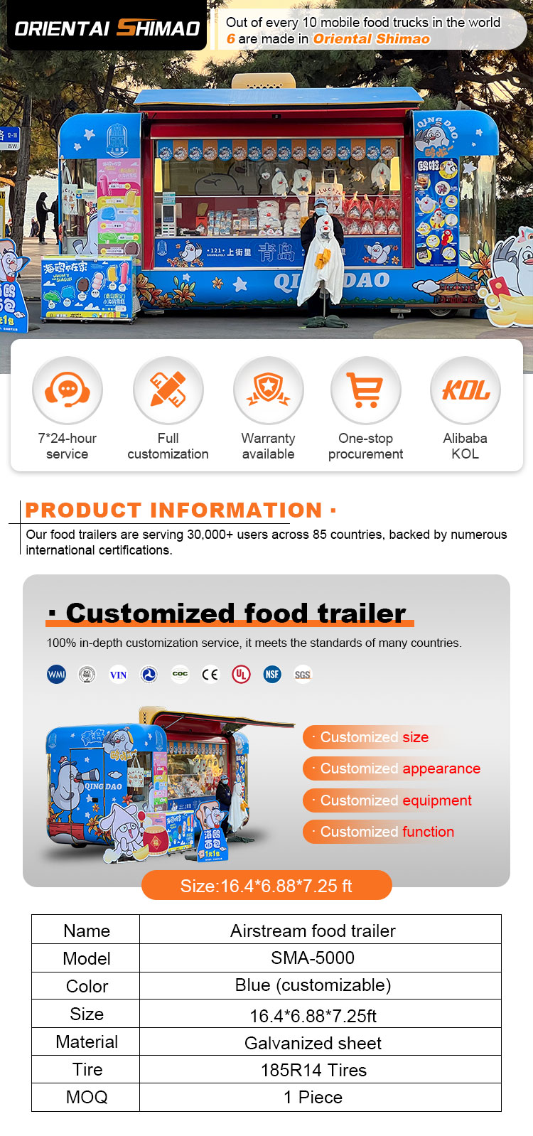 Możemy zaoferować przyczepy gastronomiczne Certyfikaty: DOT, CE, SGS, SCI, ISO, COC,