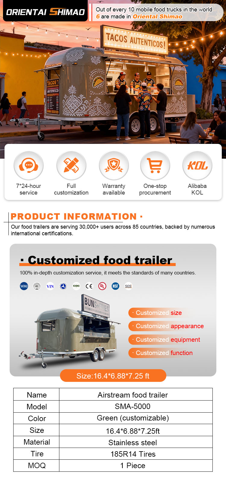 Możemy zaoferować przyczepy gastronomiczne Certyfikaty: DOT, CE, SGS, SCI, ISO, COC,