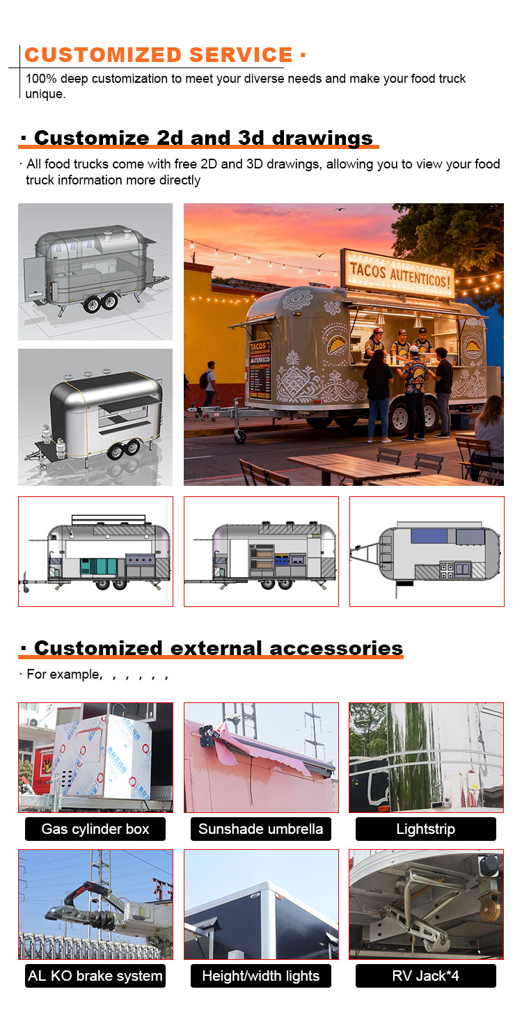 Wózek na żywność Mobilna kuchnia Komercyjne wyposażenie restauracji Catering Elektryczna przyczepa do żywności Street Use Food Truck