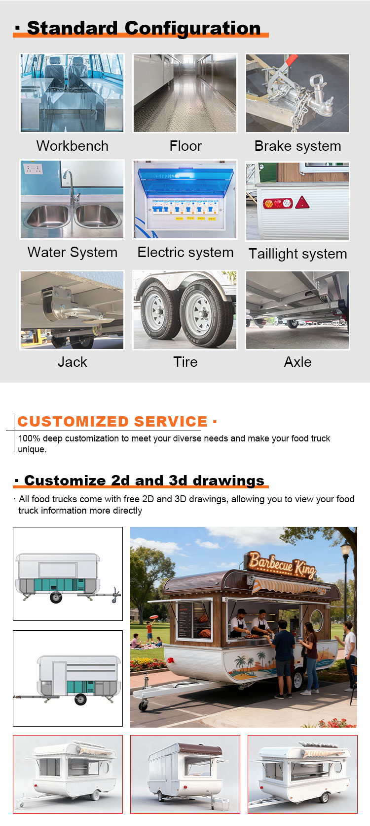 Wózek na żywność Mobilna kuchnia Komercyjne wyposażenie restauracji Catering Elektryczna przyczepa do żywności Street Use Food Truck