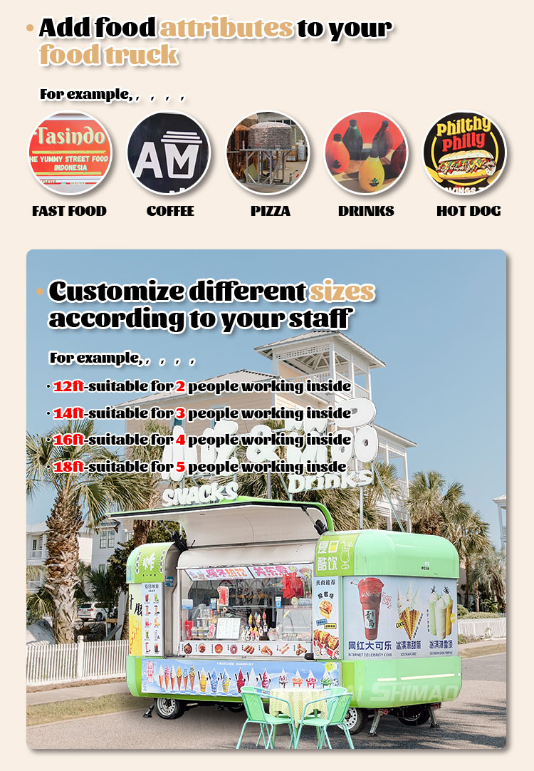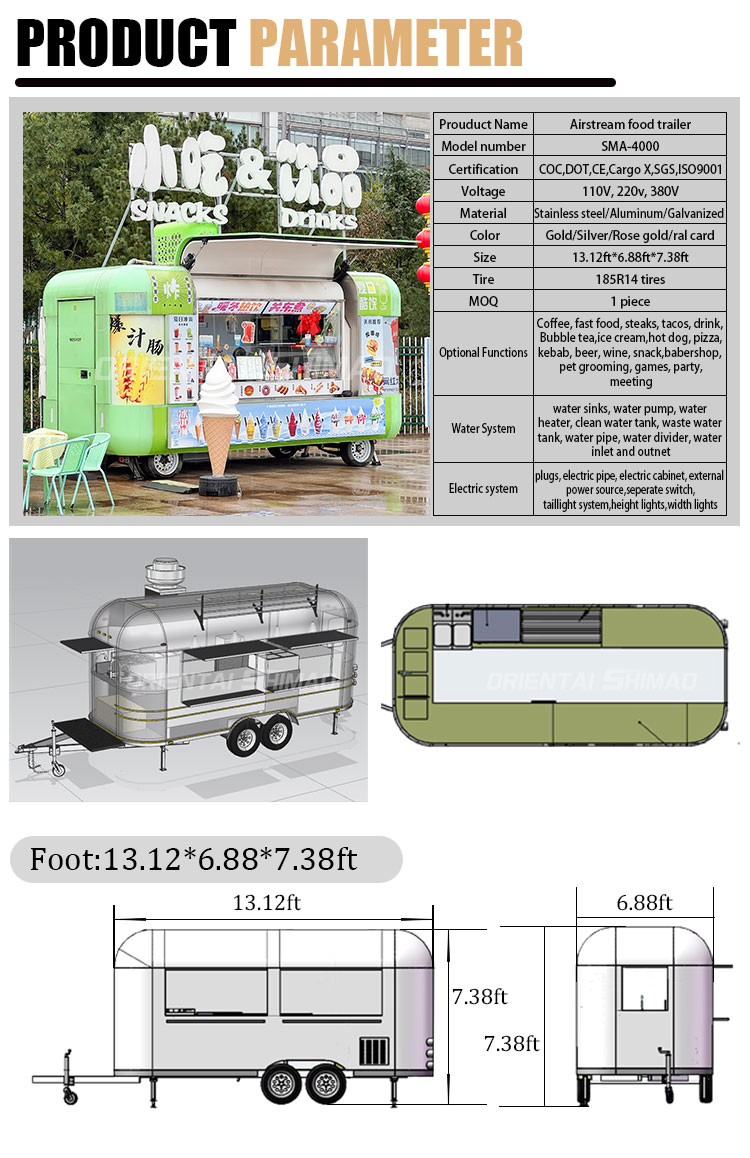 Możemy zaoferować przyczepę spożywczą z pełnymi certyfikatami kuchennymi: DOT, CE, SGS, SCI, ISO, COC,