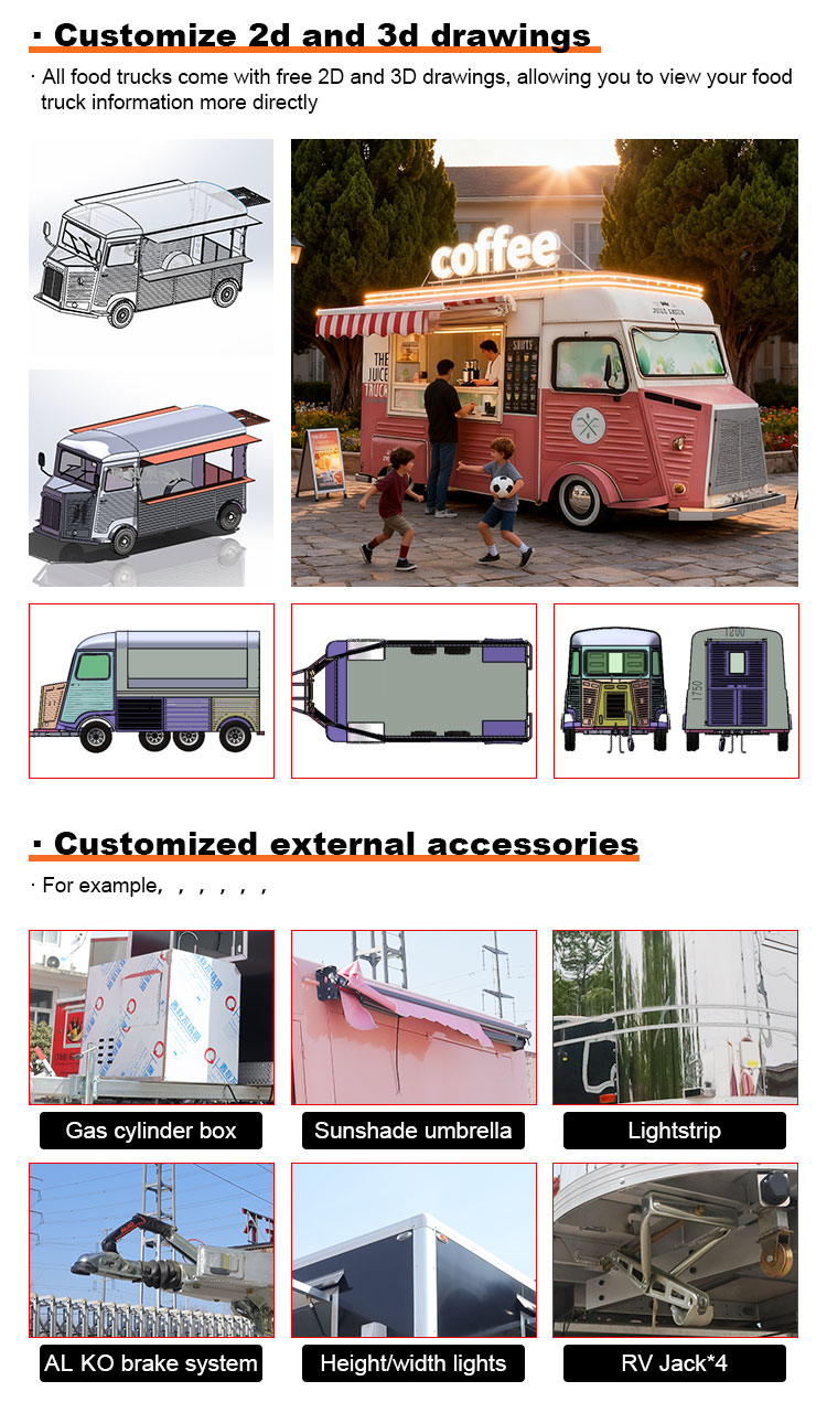 Wszechstronność: aby sprostać potrzebom różnych scenariuszy cateringowych, w pojeździe wbudowano różnorodne profesjonalne urządzenia do gotowania i przechowywania, od przyborów kuchennych po miejsca do przechowywania składników, które mogą zaspokoić potrzeby zróżnicowanych i wysoce wydajnych operacji cateringowych oraz znacznie zwiększyć wydajność operacyjną, niezależnie od tego, czy chodzi o gotowanie na miejscu, czy szybką dostawę żywności.