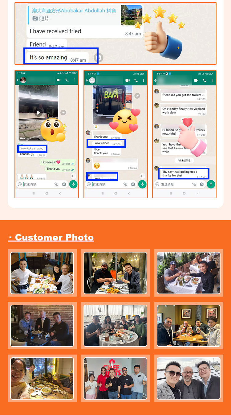 Jako główny materiał wybraliśmy wysokiej jakości stal nierdzewną 304, która jest znana z doskonałej odporności na korozję i doskonałej trwałości, a także może utrzymać stabilną wydajność w różnych warunkach środowiskowych, dzięki czemu nasze produkty do przyczep gastronomicznych mogą zachować doskonałą jakość i funkcjonalność nawet w dłuższej perspektywie i stawić czoła różnorodnym wyzwaniom. Doskonała odporność stali nierdzewnej 304 na korozję, dzięki czemu na ciężarówkę nie jest łatwo podatne utlenianie lub rdza, co znacznie wydłuża jej żywotność. Doskonała odporność na korozję stali nierdzewnej 304 sprawia, że ciężarówki są mniej podatne na utlenianie i rdzę, co znacznie wydłuża ich żywotność.