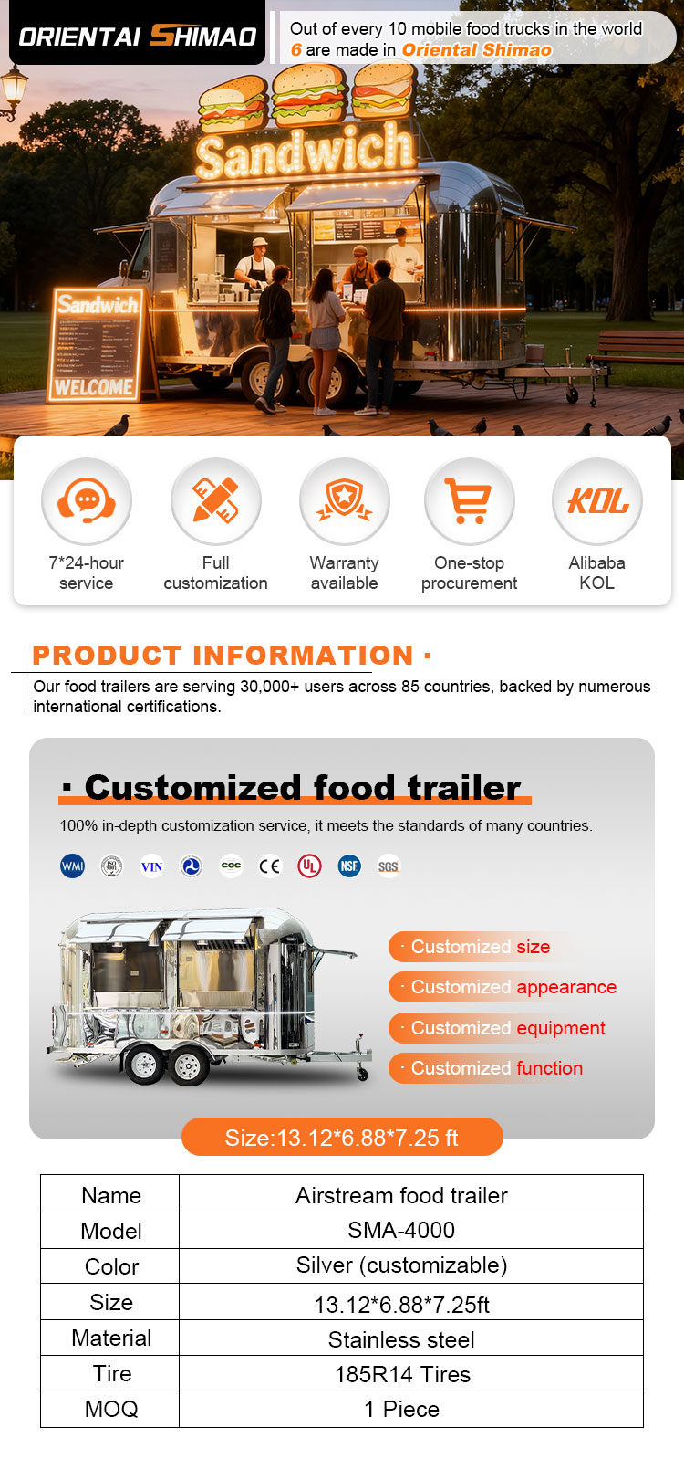 Możemy zaoferować certyfikaty wózków do lodów: DOT, CE, SGS, SCI, ISO, COC,