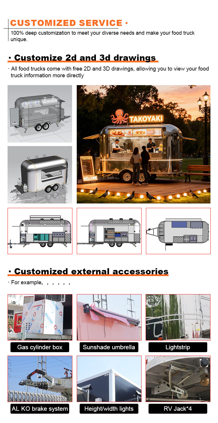 Sprzęt do pojazdów gastronomicznych Komercyjny sprzęt kuchenny Catering Mobilna przyczepa do żywności Food Truck