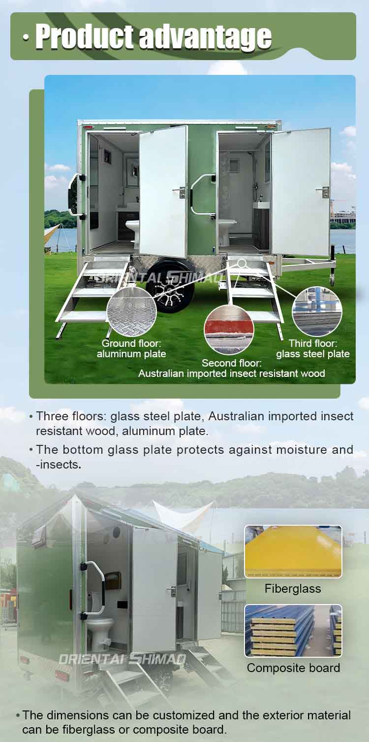 Oriental Shimao Deluxe ekologiczna przyczepa toaletowa na zewnątrz to przenośne rozwiązanie toaletowe zaprojektowane w celu zaspokojenia potrzeb dla wszystkich rodzajów wydarzeń na dużą skalę, placów budowy, obozów zewnętrznych i miejsc ratowniczych awaryjnych. Łącząc zaawansowane technologie środowiskowe z przyjaznym dla użytkownika projekt, ten pojazd sanitarny zapewnia wygodne, bezpieczne i wydajne wrażenia toaletowe, co czyni go najlepszym wyborem dla nowoczesnych tymczasowych urządzeń sanitarnych.