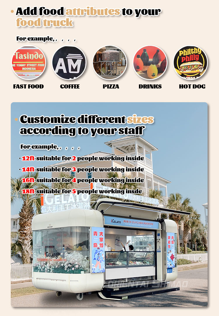Modelowanie i styl: modelowanie wyglądu i styl food trucka jest ważnym czynnikiem przyciągającym klientów. Można go dostosować do wizerunku marki klienta, cech biznesowych lub osobistych preferencji, takich jak usprawniony projekt, styl retro, nowoczesna prostota i tak dalej.