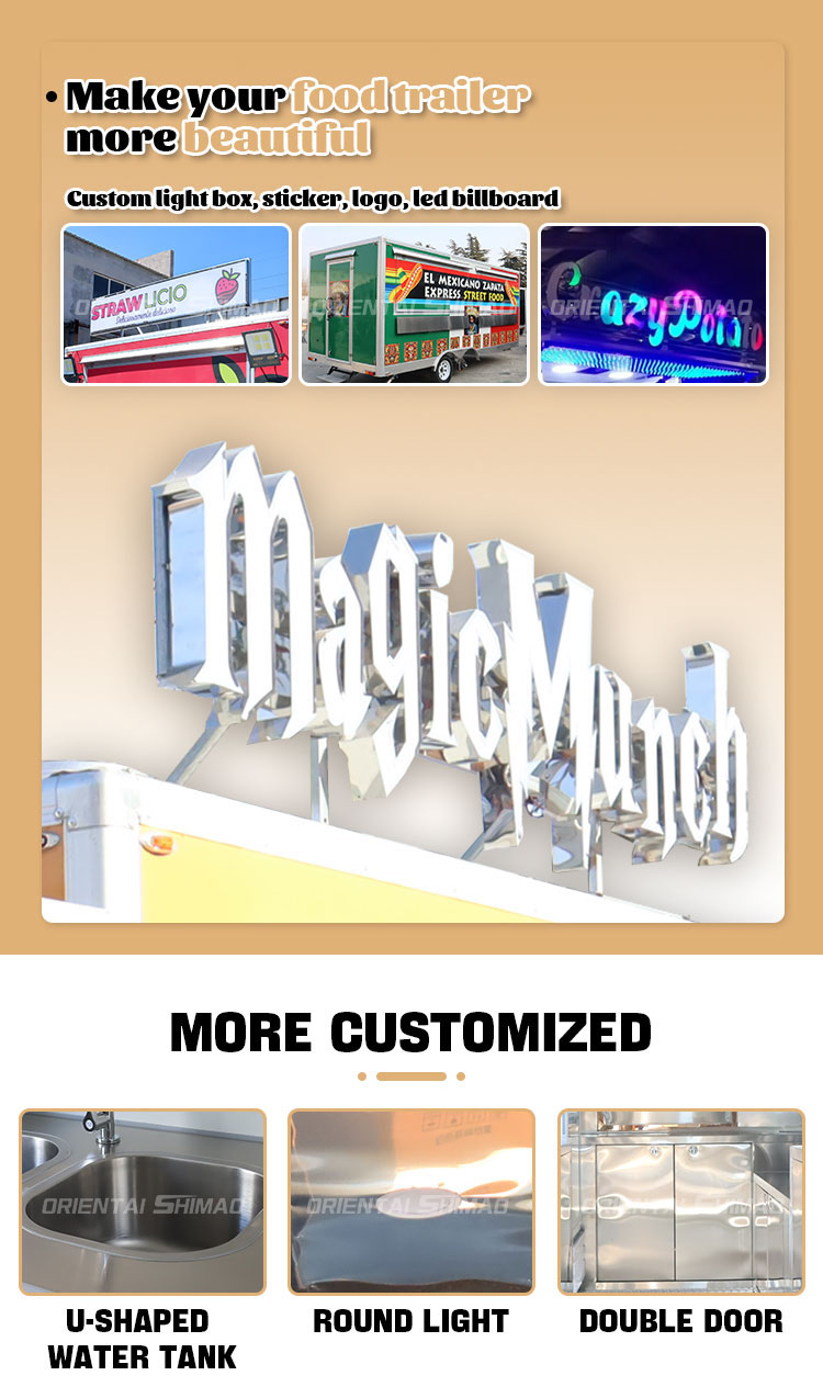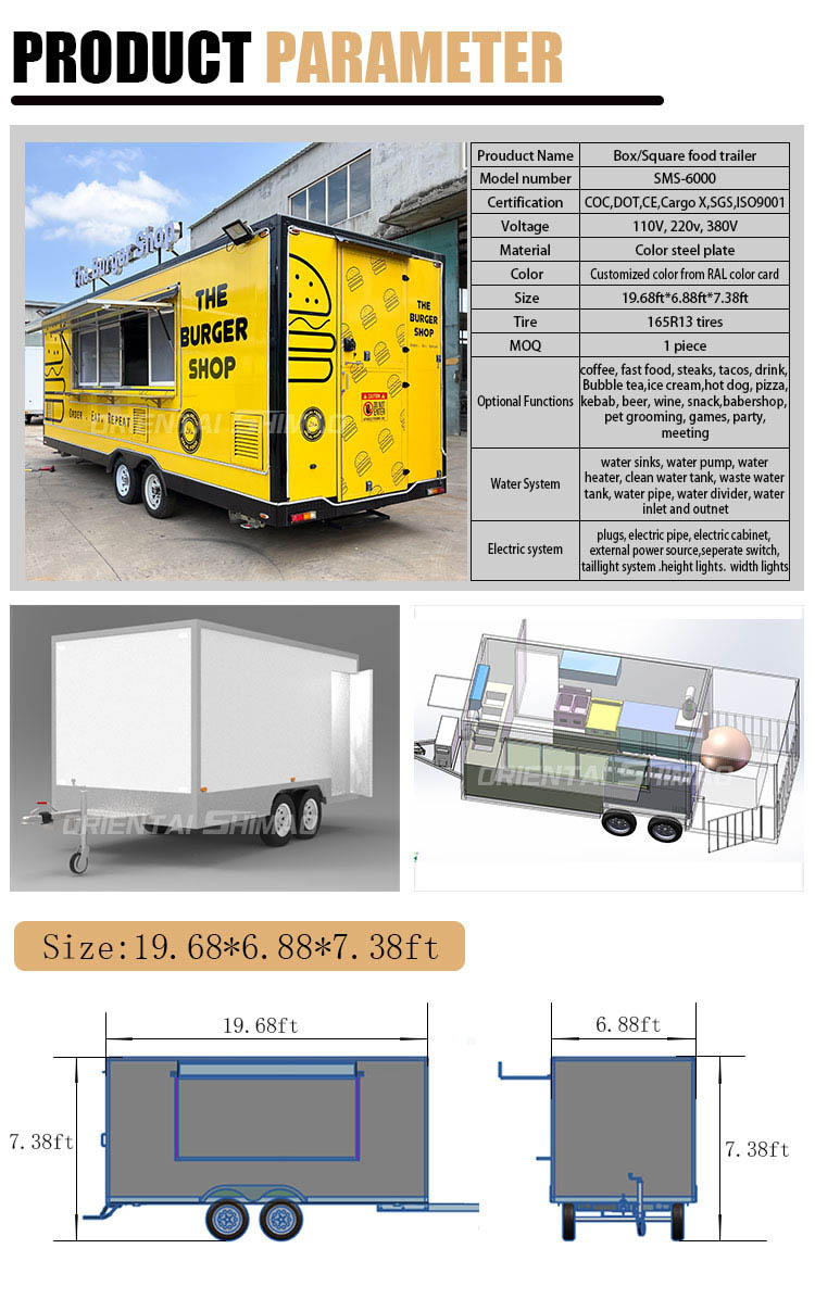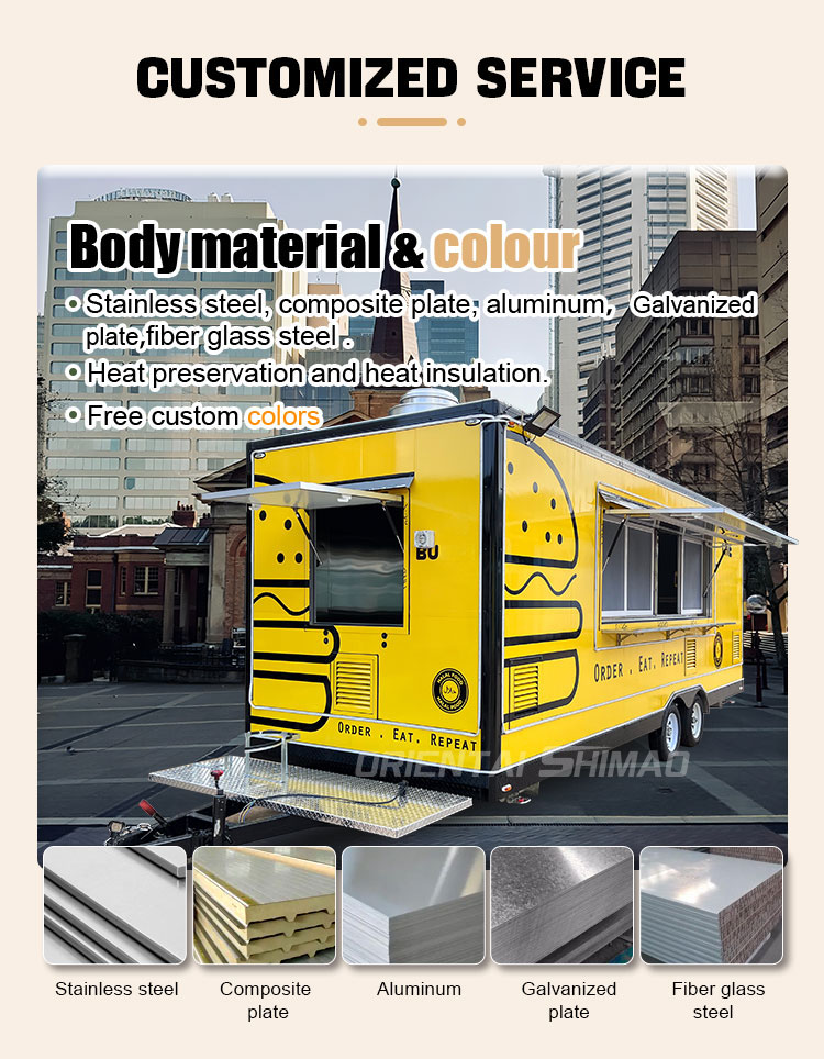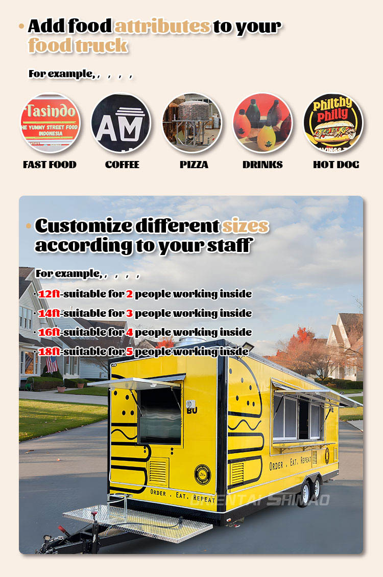 Wystarczy, że podasz potrzebne informacje o produkcie, nasz starszy menedżer sprzedaży przedstawi Ci zalecane produkty, a następnie od początku zamówienia nasz profesjonalny zespół projektowy może dać Ci projekt należący do Twojej wersji roboczej, a następnie rozpocząć produkcję food trucka. Możesz w pełni popuścić wodze wyobraźni, aby dostosować produkt od wewnątrz do zewnątrz, możesz także kupić niezbędny sprzęt po naszej stronie swojej firmy, oszczędzając sobie kłopotów z zakupem i wyborem, a produkcję całości zapewnimy Ci Twojego zespołu serwisowego, o wszelkich problemach z nami w dowolnym momencie. Utworzymy dla Ciebie zespół serwisowy i możesz w każdej chwili skontaktować się z nami w przypadku jakichkolwiek pytań, po produkcji wyślemy Ci film do kontroli lub możesz przyjechać do fabryki, aby sprawdzić towary, zapraszamy!
