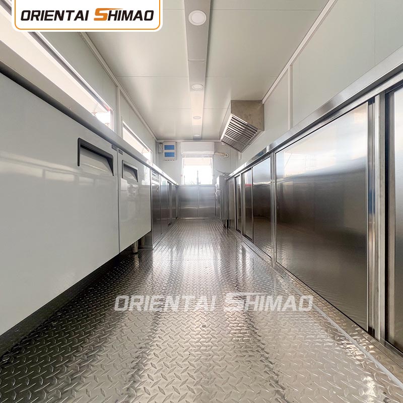 Funkcje dodatkowe: dodaj inne dodatkowe funkcje zgodnie z potrzebami klienta, takie jak chłodzenie i zachowanie świeżości, ogrzewanie i ochrona przed ciepłem, wodoodporność i odporność na elektryczność itp., aby zwiększyć praktyczność i bezpieczeństwo food trucka.