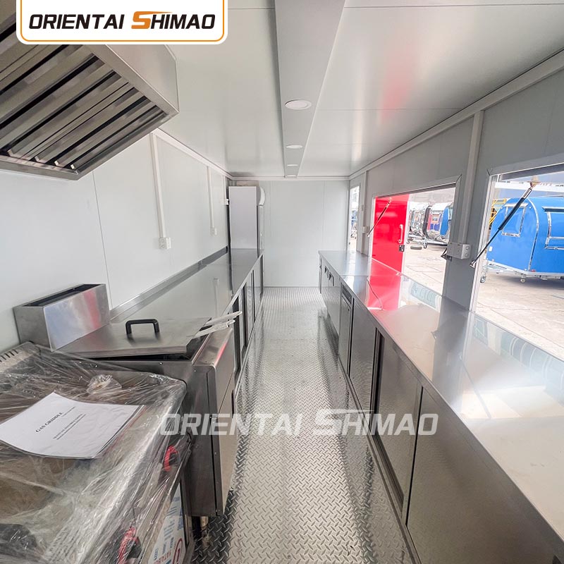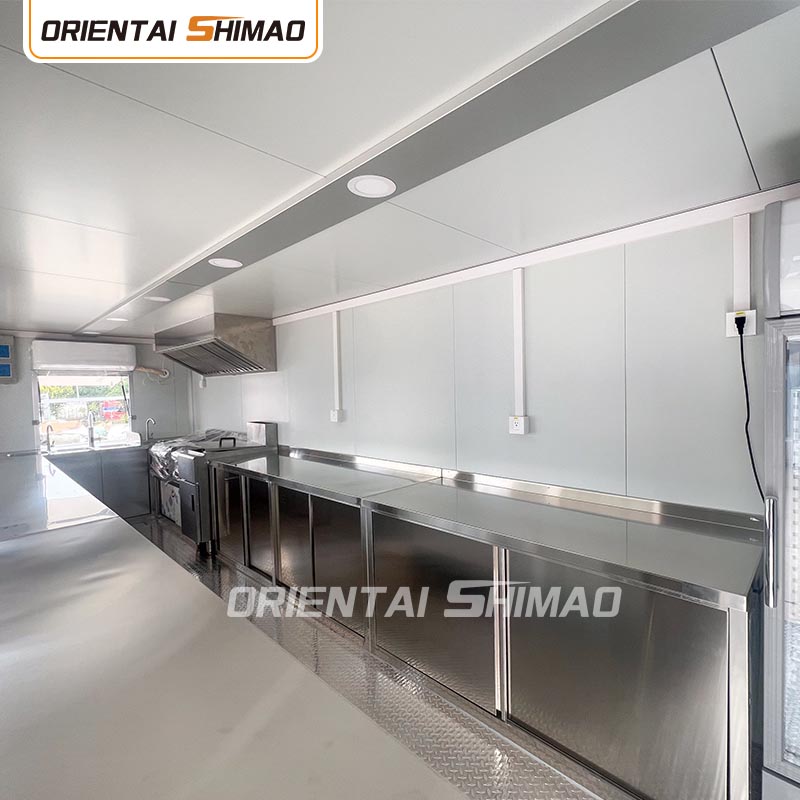 Układ wnętrza: Rozsądne planowanie kuchni, jadalni, miejsca do przechowywania i innych obszarów, aby zapewnić maksymalne wykorzystanie przestrzeni. Jednocześnie, zgodnie z potrzebami biznesowymi, tworzone są różne obszary funkcjonalne, takie jak obszar produkcyjny, obszar grzewczy, obszar sprzedaży itp., Aby ułatwić obsługę i poprawić efektywność operacyjną.