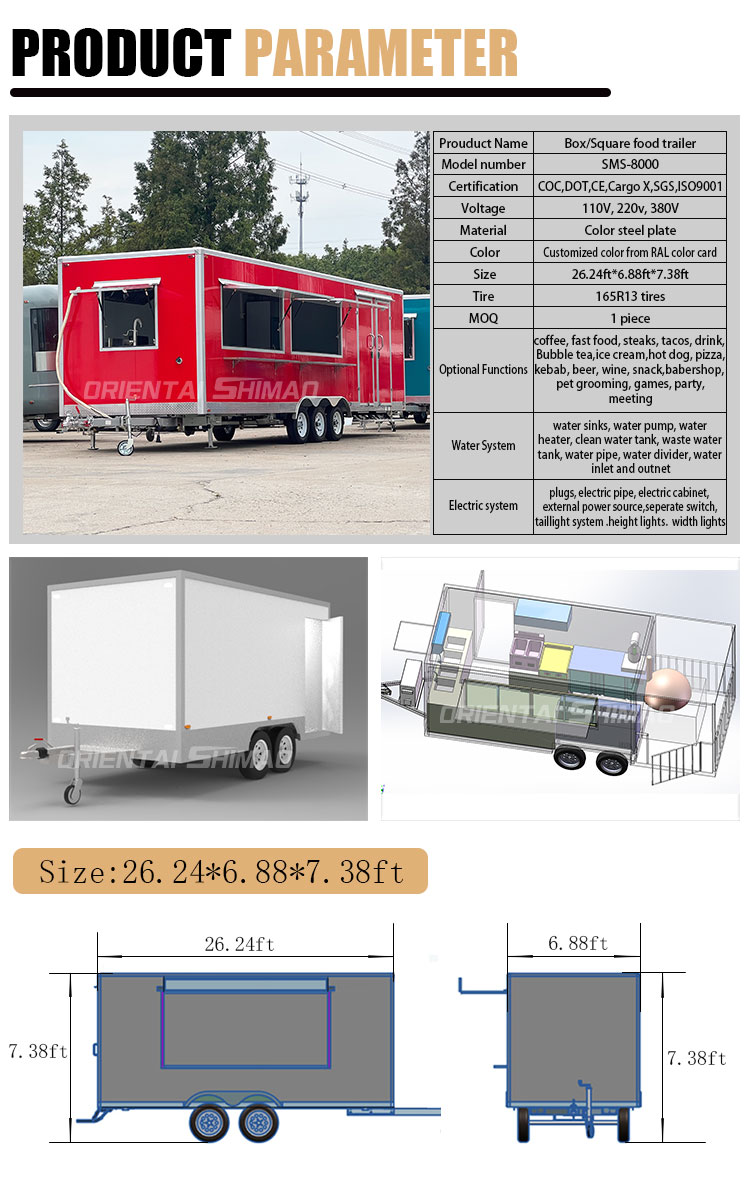 Możemy zaoferować na sprzedaż mobilne wózki spożywcze. Certyfikaty: DOT, CE, SGS, SCI, ISO, COC,