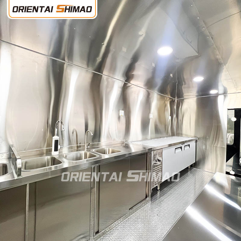 Złota stal nierdzewna: zewnętrzna część food trucka wykonana jest z wysokiej jakości złotej stali nierdzewnej. Materiał ten ma nie tylko doskonałą odporność na korozję i ścieranie, ale także złoty wygląd zwiększa piękno wizualne i wysoką jakość, dzięki czemu food truck może wyróżniać się w różnych środowiskach.