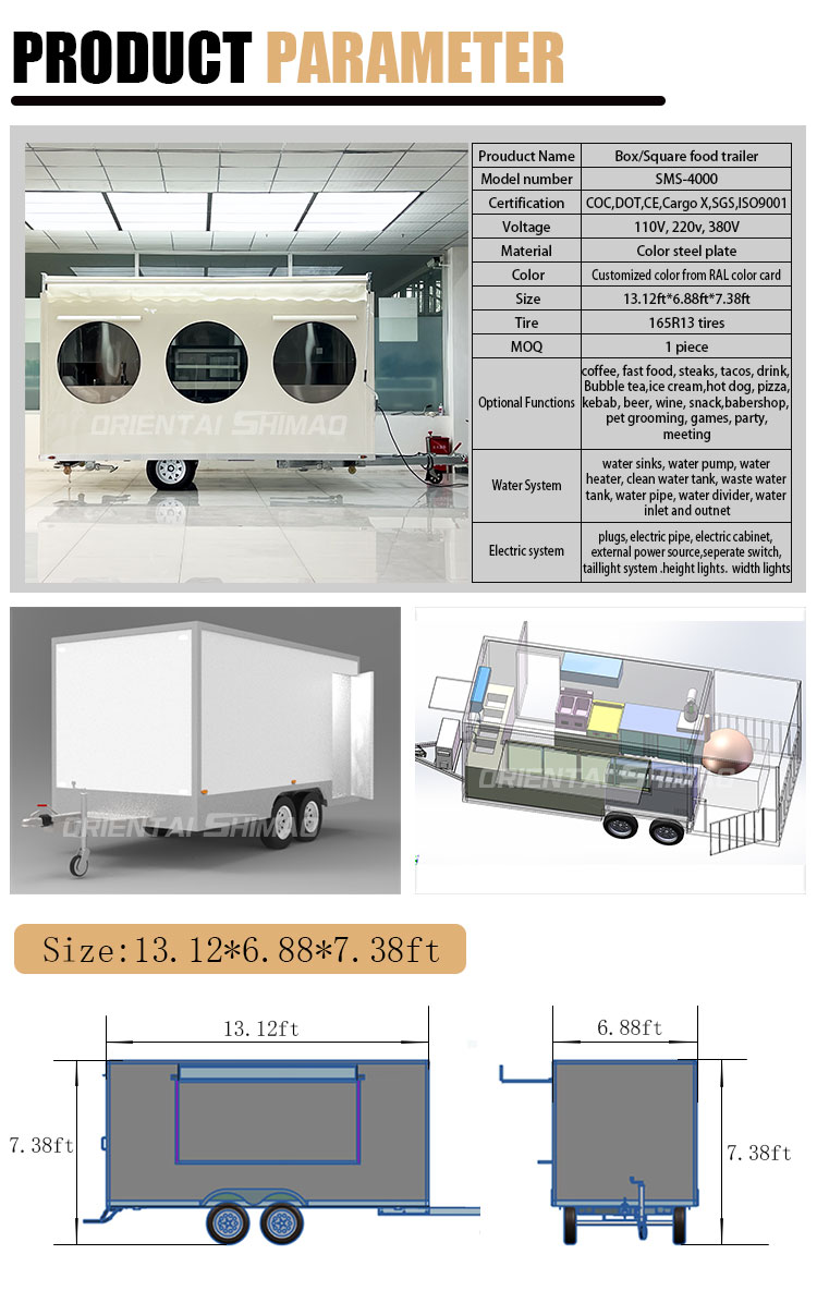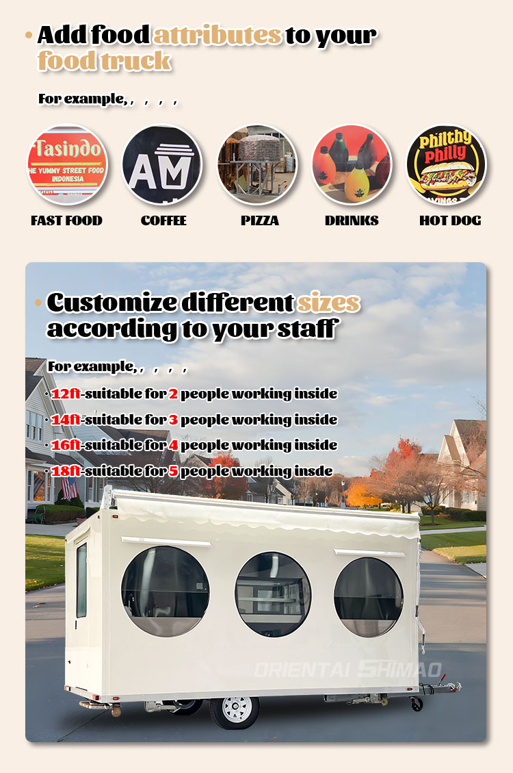 Modelowanie i styl: modelowanie wyglądu i styl food trucka jest ważnym czynnikiem przyciągającym klientów. Można go dostosować do wizerunku marki klienta, cech biznesowych lub osobistych preferencji, takich jak usprawniony projekt, styl retro, nowoczesna prostota i tak dalej.